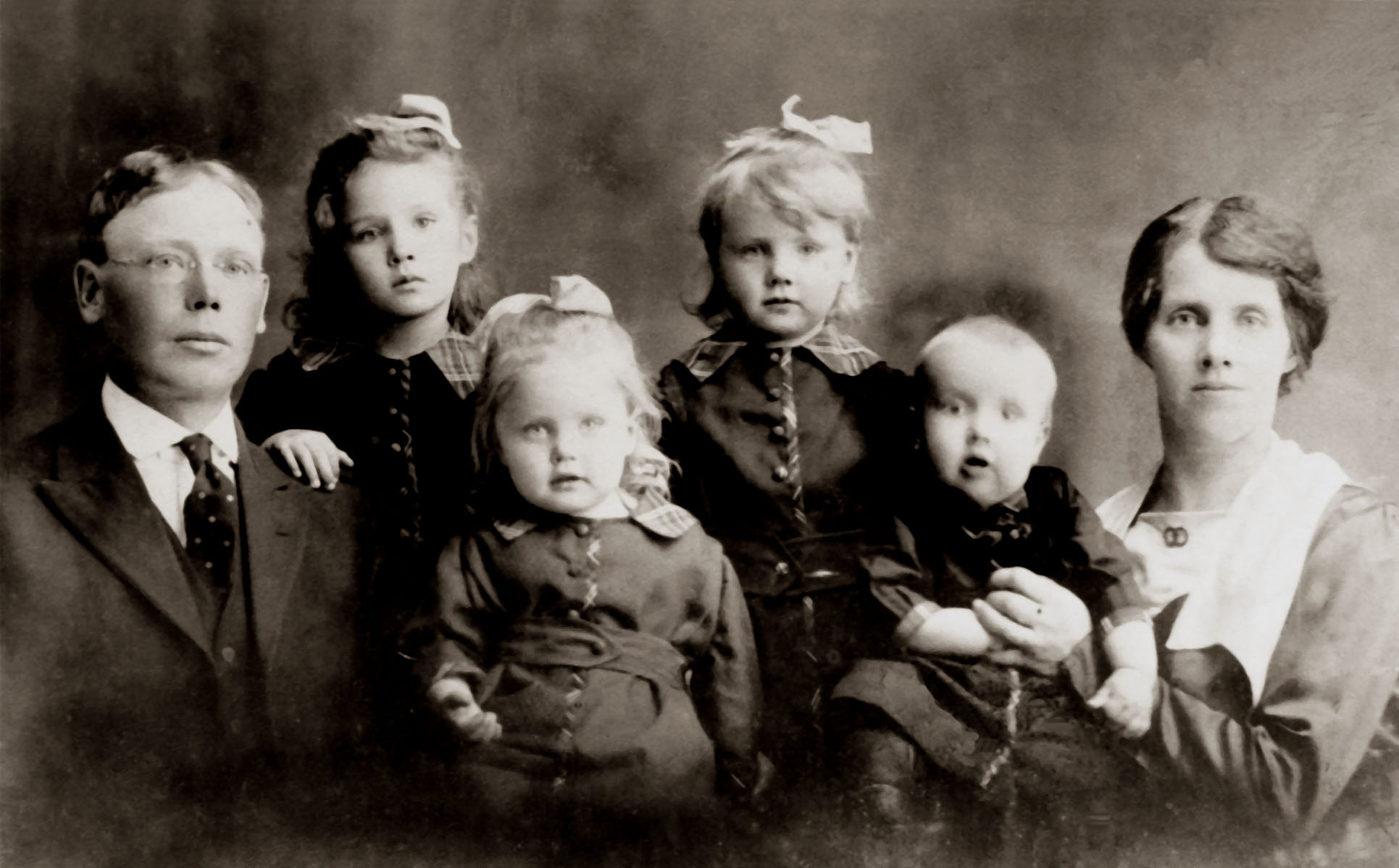 This picture was probably taken in Duluth. It shows Martin, and Kamilla, with Helen, Margaret, Mildred, and Norman |